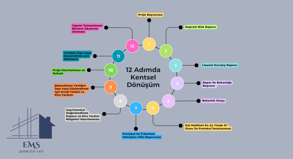 Kentsel dönüşüm, detaylı yasal ve teknik prosedürler içeren kapsamlı bir süreçtir. EMS Şehircilik Yapı olarak, eski ve riskli binanızı güvenli bir yuvaya dönüştürürken bu karmaşık adımların her birini sizin adınıza titizlikle yürütüyoruz.
